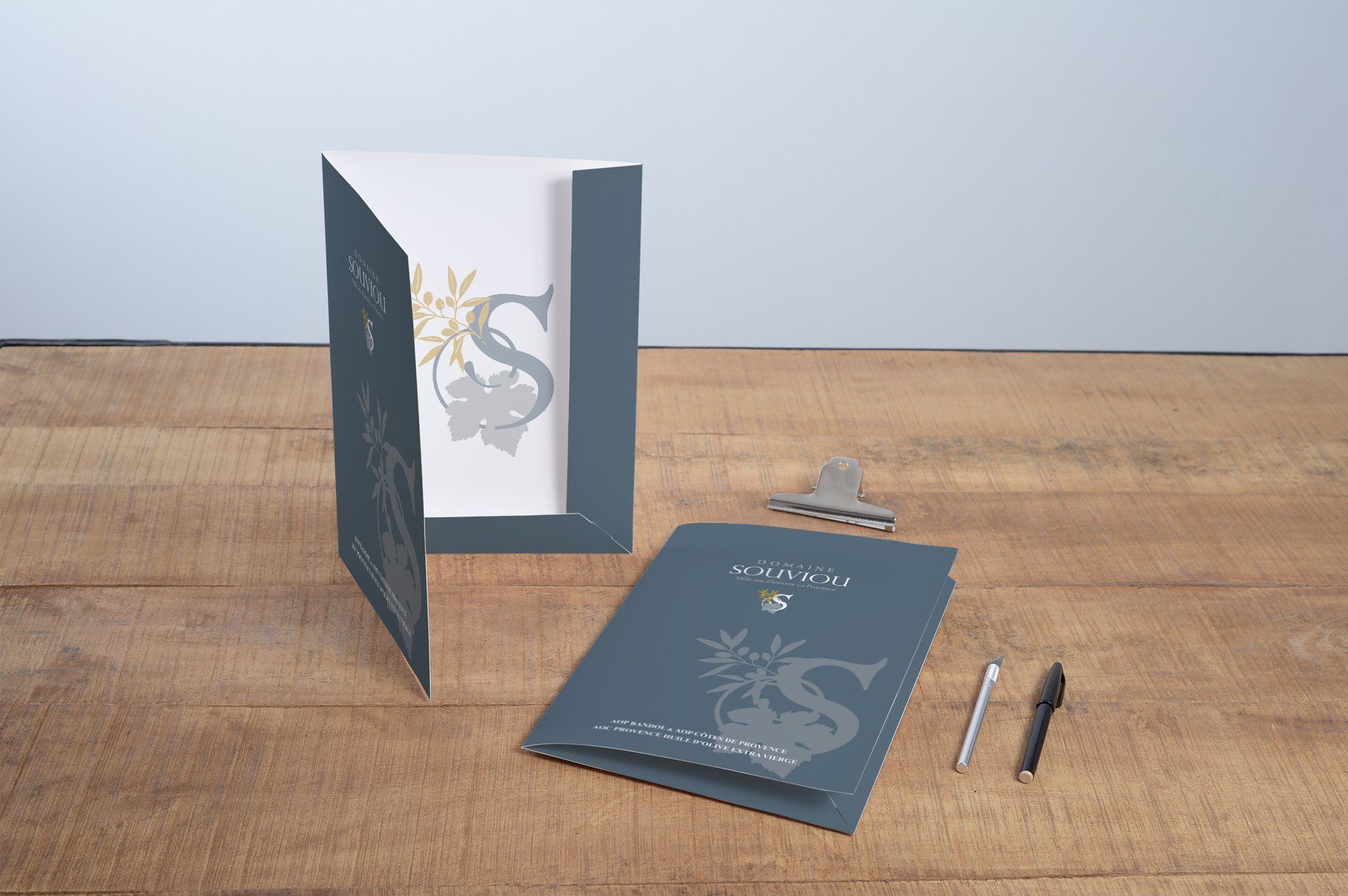 Pubkom réalise divers travaux d'imprimerie pour le Domaine Souviou comme les chemises à rabats. Le Domaine Souviou se situe en Provence près du village du Beausset. Il s’étend sur 70 hectares de vignes (AOP Bandol et AOP Côtes de Provence) et d’oliviers (Huile d'olive haut de gamme) qui surplombent la mer Méditerranée.