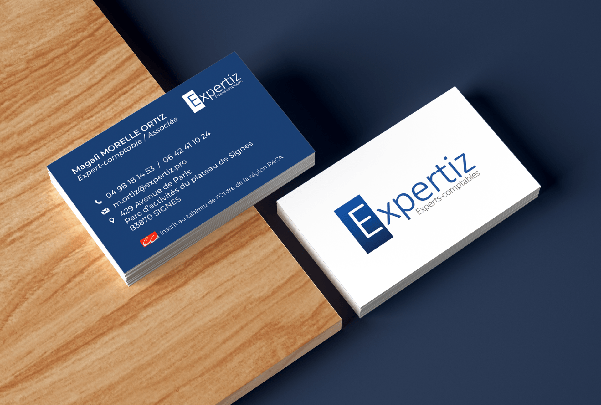 Expertiz, cabinet d’experts-comptables situé dans le Parc d’activités de Signes, a fait confiance à Pubkom pour la création et l’impression de ses cartes de visite. Le support a été réalisé avec un pelliculage mat soft touch (effet peau de pêche) et une finition vernis sélectif 3D qui donne une touche luxueuse à la carte en mettant uniquement en relief et en brillance le logo.