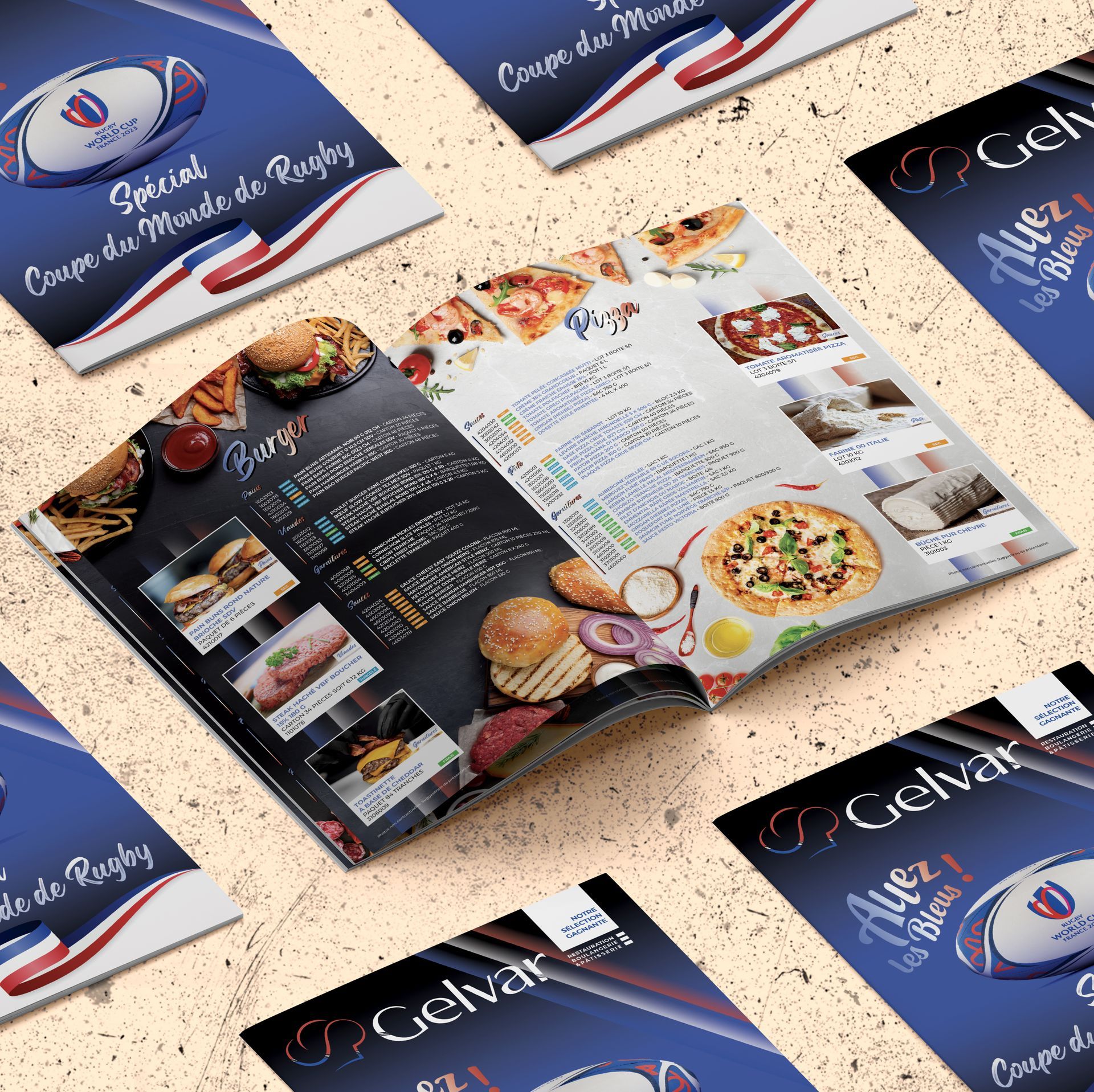 A l'occasion de la Coupe du Monde Rugby 2023 qui débute en France en septembre, Gelvar édite un catalogue spécial aux couleurs des Bleus. De la maquette à l'impression, Pubkom a réalisé, pour le grossiste alimentaire, cette brochure qui liste de nombreux produits qui accompagneront les soirées festives des matches de l'équipe de France de Rugby !