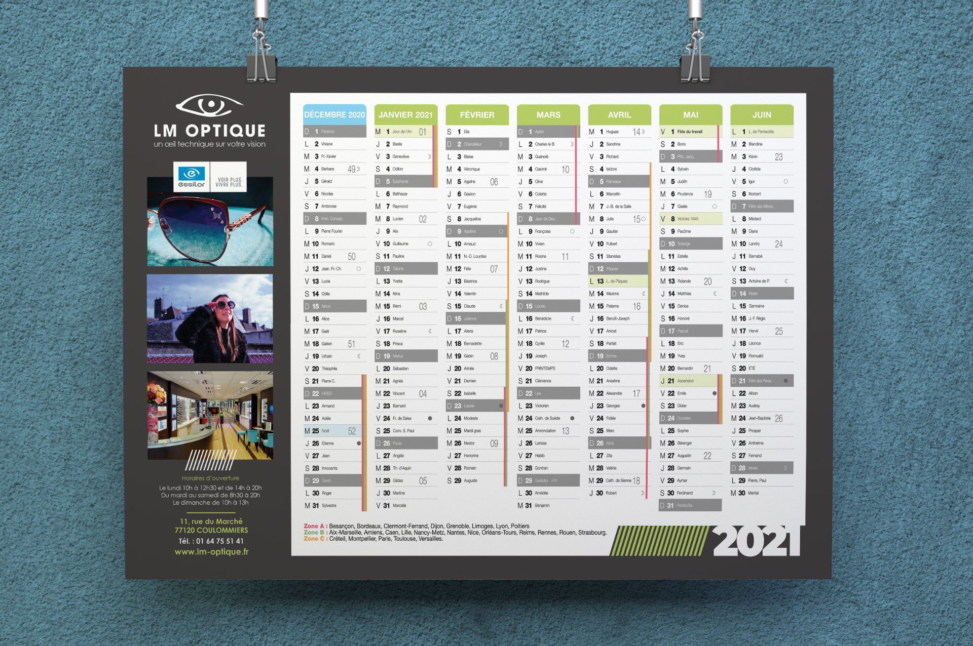 LM Optique, basé à Coulommiers en Île-de-France, fait régulièrement appel aux services de Pubkom pour divers travaux graphiques et d'impression. L'agence réalise notamment des calendriers contrecollés (calendriers bancaires) destinés à la clientèle de l'opticien.