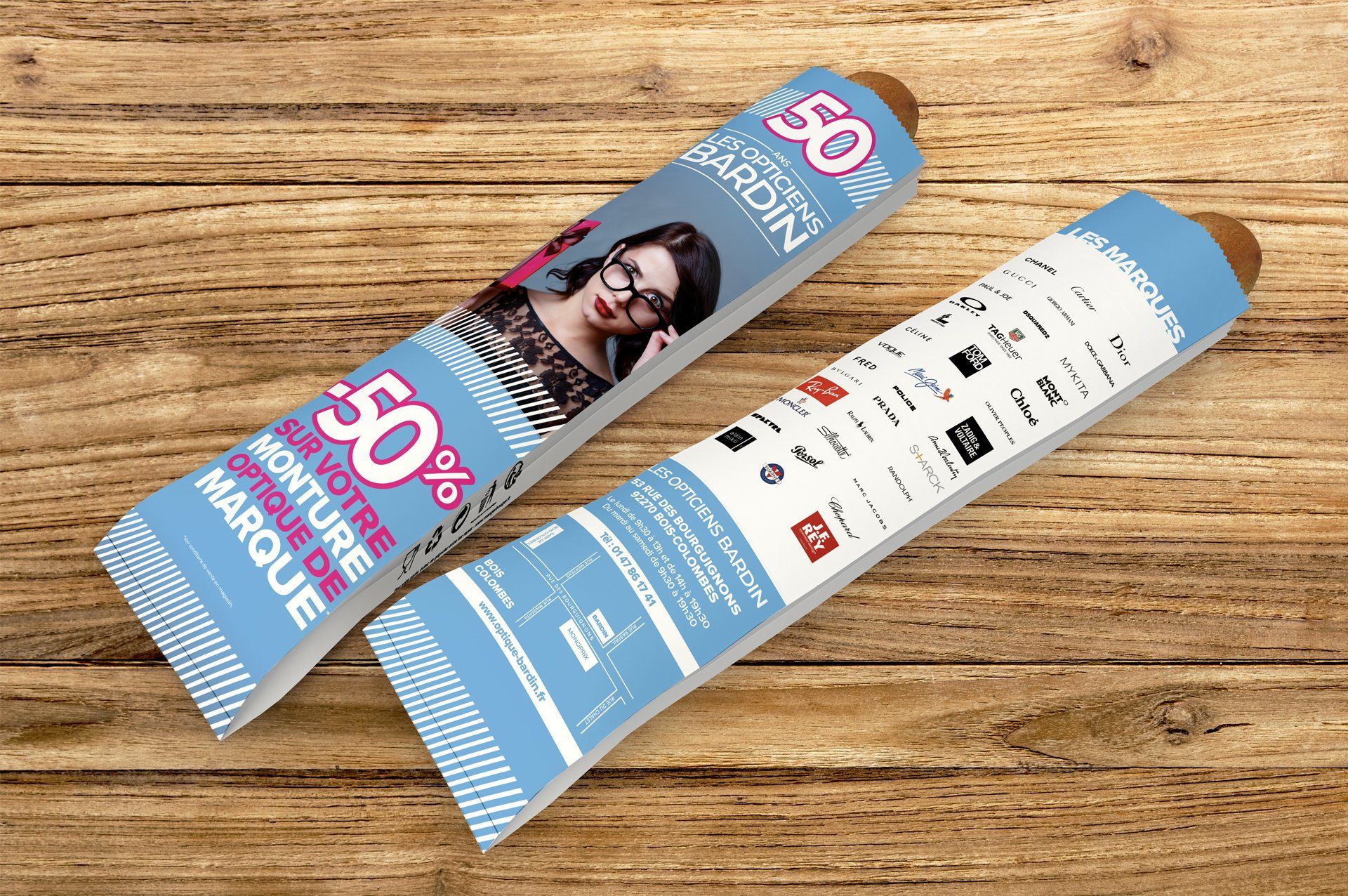 De la création graphique à l'impression, Pubkom a réalisé un sac à baguette publicitaire pour les Opticiens Bardin. Pour une campagne marketing originale, économique et percutante qui s’adresse à un large public, le sac à pain publicitaire est le support de communication idéal.