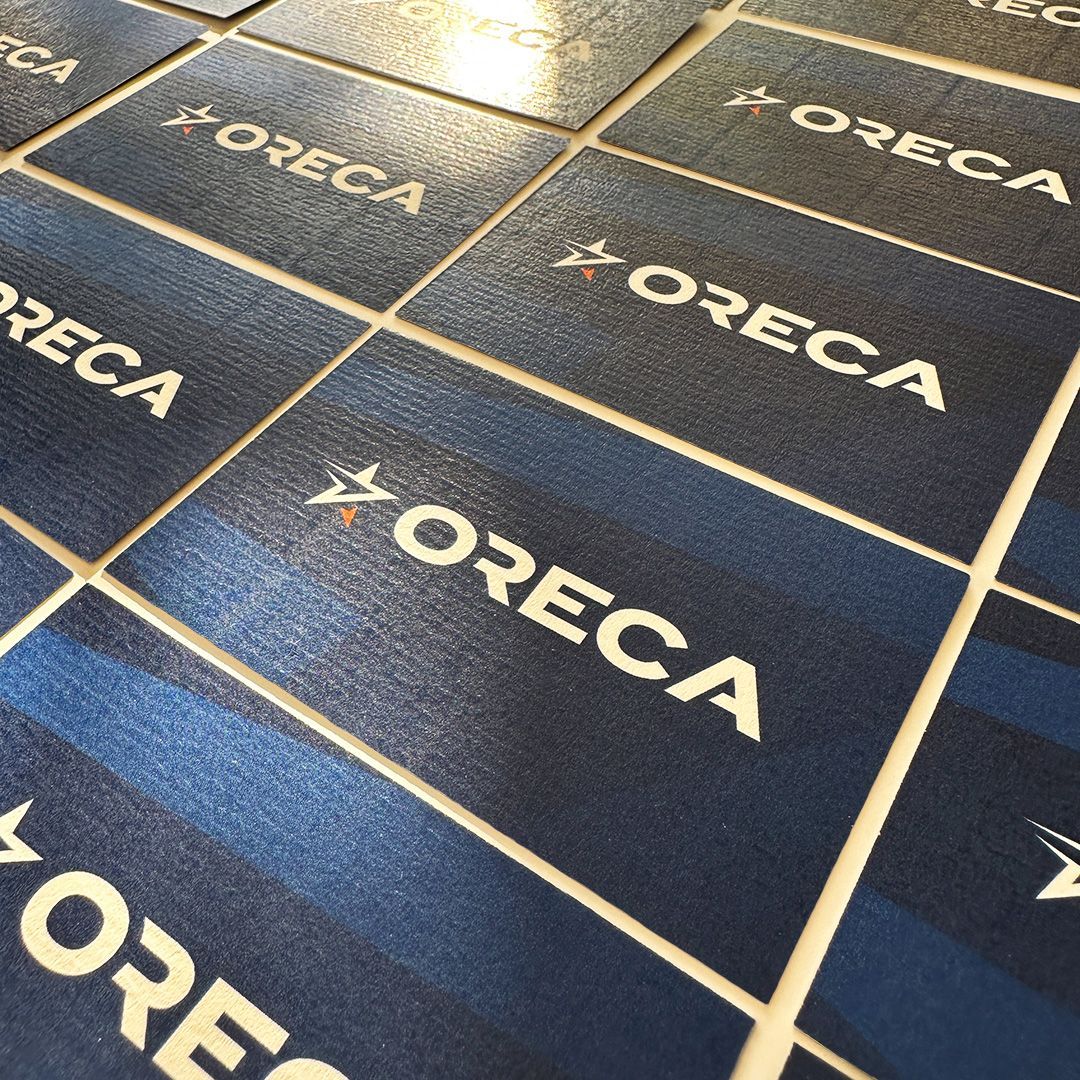 Oreca fait régulièrement confiance à Pubkom pour ses nombreux besoins en imprimerie, notamment pour la fabrication de ses cartes de visite. Chaque détail est soigneusement étudié pour refléter l’image premium de l’entreprise. Les cartes de visite sont imprimées sur un papier texturé de qualité supérieure provenant de la prestigieuse marque Fedrigoni, réputée pour ses matériaux haut de gamme. Ce choix stratégique contribue à renforcer l’identité visuelle d’Oreca, en lui conférant une allure raffinée et une touche d’exclusivité. Grâce à cette approche, l’entreprise se démarque par une communication visuelle élégante, soignée et parfaitement alignée avec ses standards d’excellence.