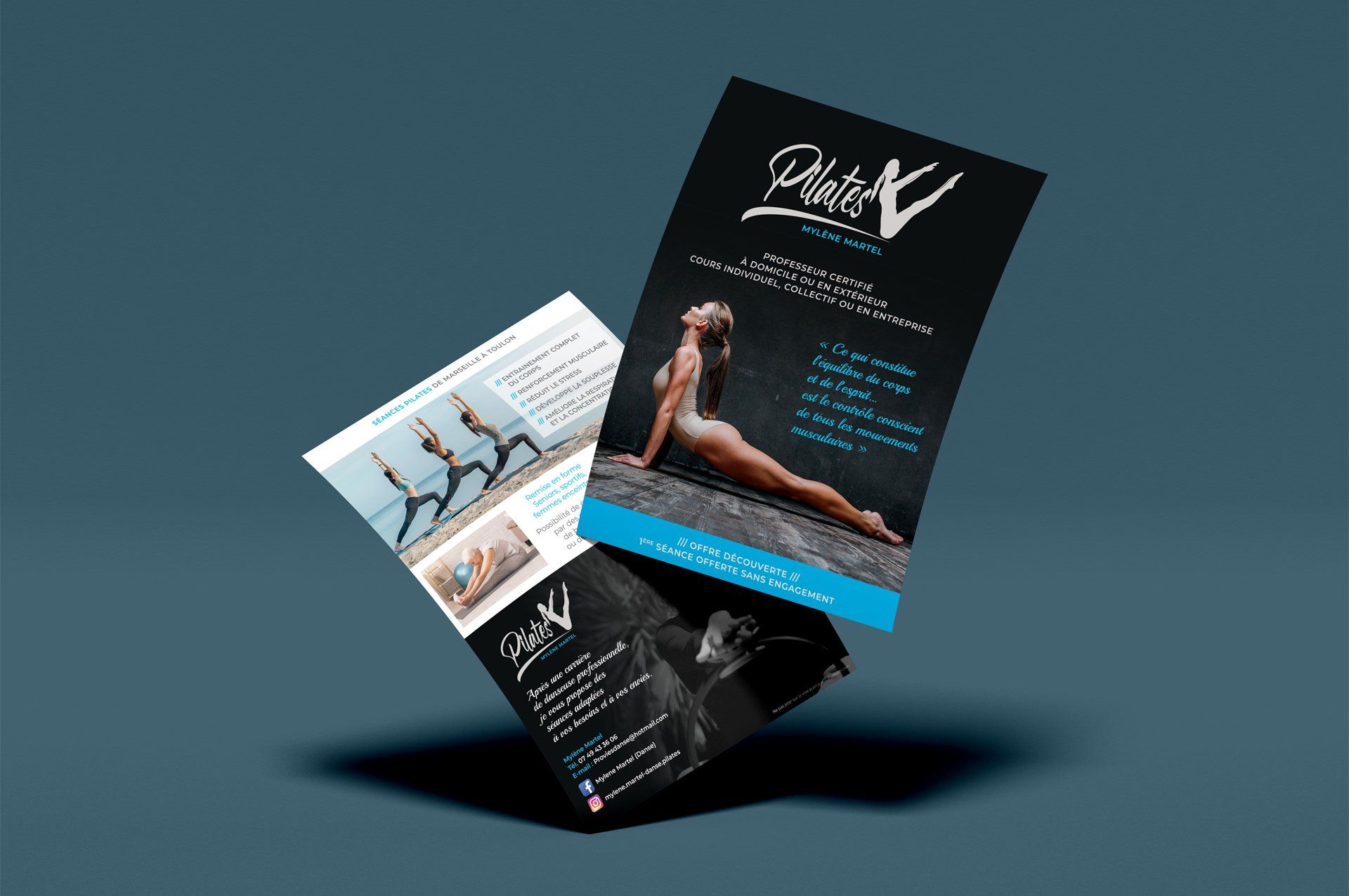 Pubkom a réalisé le flyer de Mylène Martel qui propose, après une carrière de danseuse professionnelle, des séances de Pilates, à domicile comme en extérieur, de Marseille à Toulon.