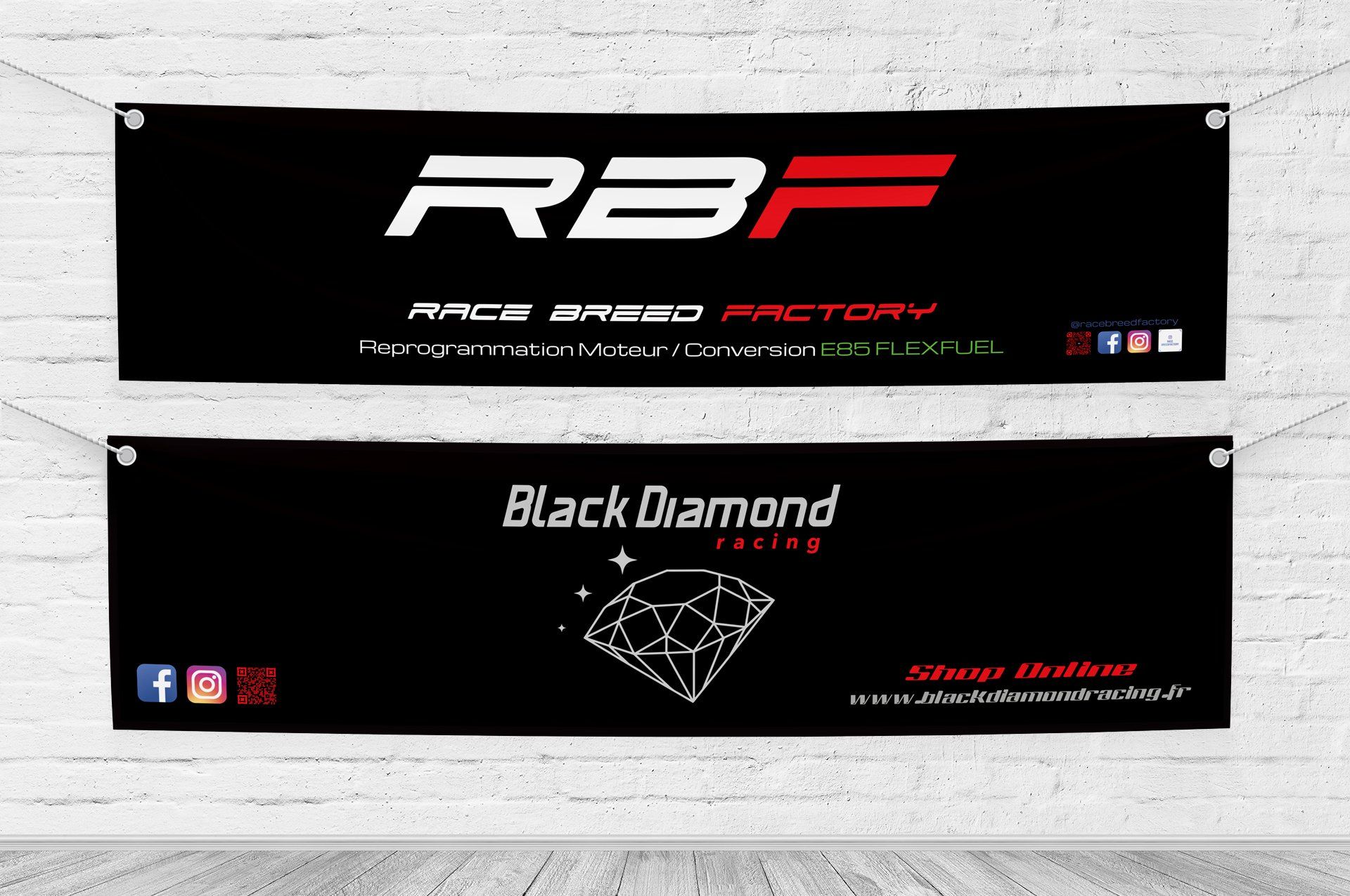 Race Breed Factory et Black Diamond Racing ont fait confiance à Pubkom pour la fabrication de leur bâche publicitaire en PVC. Avec l'objectif de rendre les messages publicitaires visibles de loin, la banderole est un moyen de communication efficace et économique.